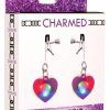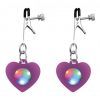 Show them the light of your heart with these light-up heart nipple clamps! Choose between 3 different light patterns and give them a show they won’t forget! The purple heart and the green, blue and red lights of the LEDs are sure to leave them dazzled! The metal clamps are fully adjustable; simply turn the screw until the right pressure is achieved. The vinyl tips help keep the clamps firmly on the nipples and also protect against any abbrasion to the delicate skin. The LED lights are operated by 4 CR1220 batteries (not included). Slowly place the clamps at the juncture between the nipples and the areola, clamp them slowly by twisting the screw until the pressure is right, and enjoy the show! Measurements : Overall length: 3.6 inches, Clamps open up to: 0.5 inches wide Materials : Silicone, ABS plastic, metal, vinyl Color : Violet silicone heart, LED lights: green, blue, red Note : 4 CR1220 batteries (included)