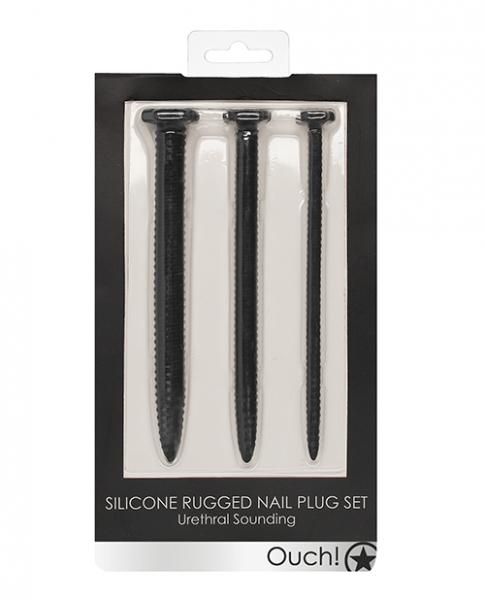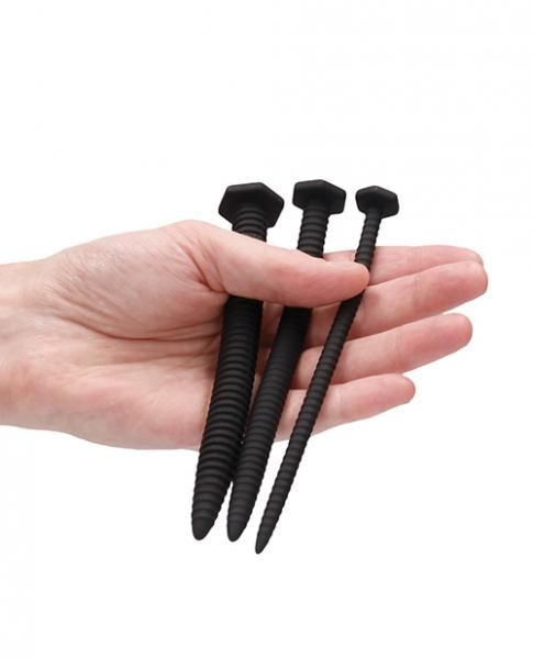 Ouch Silicone Screw Plug Set Urethral Sounding Black from Shots Toys. Ouch! Introduces a new line of toys for urethral explorers! If urethral sounding is your kink, then let these smooth probes deliver the ultimate pleasure! The urethra is lined with super sensitive nerve endings, which can be extremely pleasurable when stimulated. Additionally, deep urethral play is the only way to directly massage the prostate. Ouch! Has a variety of urethral sounding probes for beginners as well as advanced users! This set of 3 screws have smooth pointed tips for easy insertion. The flat rounded head allows for safe and easy extraction. Made from super smooth medical grade, phthalate free silicone these screws have a total length of 6.1 inches, an insertable length of 5.9 inches and 3 three different diameters measuring 0.36 inch, 0.52 inch and 0.65 inch. Always use with a generous helping of sterile water based lubricant and insert slowly and incrementally for maximum pleasure.