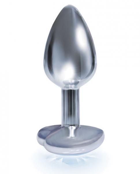Sleek chrome metallic body and Glitzy heart shaped bejeweled base on the anal plug perfect for beginners, designed and sized for easy insertion. Non-porous, easy to clean. From Icon Brands Diamond heart jewel. Body safe stainless steel. Actual heigh 2.8 inches. Includes black storage bag.