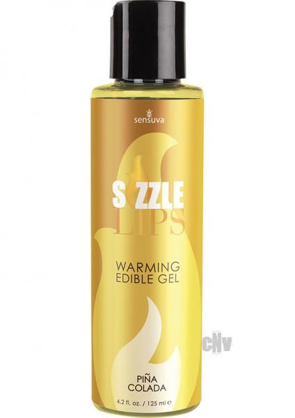 Sizzle Lips Pina Colada Warming Gel. Make your partner blush with Sizzle Lips, the Edible Warming Gel that feels hot when you blow on it. Massage it into a small area of the body, blow on it to get warm and then kiss lick it all off! The more you rub it in, the warmer it feels. Sizzle Lips is an especially great tasting, glycerin based gel with no after taste. 4.2 fluid ounces.