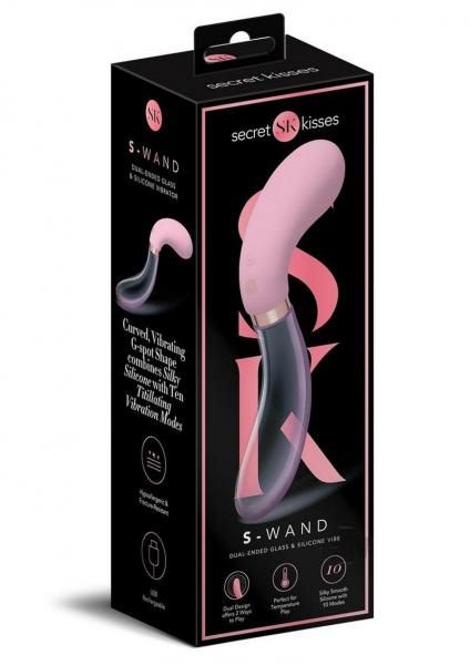 Take your bedroom experience to new heights with the Secret Kisses S-Wand. This sleek pink vibe comes equipped with a soft silicone end and a glass end for dual sensations, making it great for both solo pleasures and couple`s play. Sensual and fun, the Secret Kisses S-Wand is the perfect addition to any couple`s toy box. Its dual-ended design allows for both external and internal stimulation.
