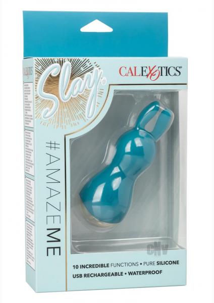Slip the teasing Slay® #AmazeMe into your purse or handbag for knee-shaking pleasure wherever you go. The unique mini rabbit massager fits between your fingers to let you deliver pinpoint tantalization while flickering ears tickle and tease. Get playful while you flicker through 10 indulgent vibration, pulsation and escalation functions with the easy-touch control button. Effortlessly control pure pleasure with an easy-touch silicone button and hold for 3 seconds to turn on or off.The dual flickering ear teasers are great for exploring sensual sweet spots and intimate pleasure points with ease. With a rounded body and flexible tips, you`ll be able to indulge in thrilling vibrations from any angle you desire.Use the smooth single button control to enjoy up to 1.5 hours of vibrating pleasure. Charge up your passion in only 2.5 hours by plugging the provided USB cable into the self-sealing charging port on the back of the massager. The slim massager discreet 4-inch size makes it the perfect travel companion, letting you embrace radiating pleasure wherever your fantasies take you.