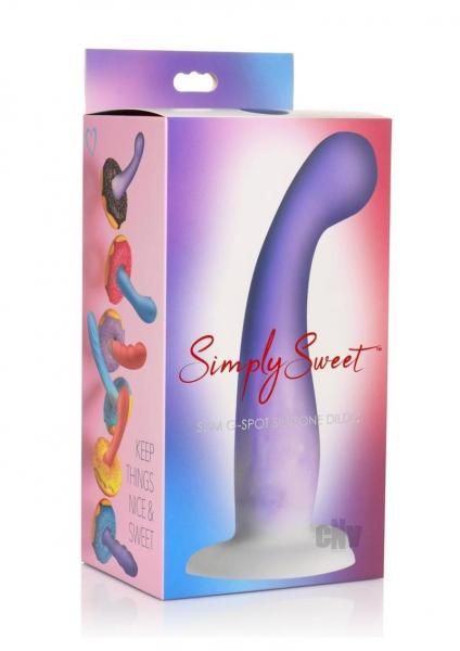 Get to your sweet spot with this Simply Sweet Slim G-Spot Silicone Dildo! The smooth, slim shaft is perfect for those who don’t want a large stretch and the round bulb at the end is perfect for massaging the G-spot or A-spot for those with female bodies or the P-spot for those with male bodies. The heart shaped base is wide enough for a strapon harness so you can enjoy partner play and pegging! Or use the suction cup base and ride it hands-free for solo, self-love sessions! Made out of premium silicone, it’s super soft and silky with a firm yet flexible core that allows you to get every angle and curve while still feeling the full, firm pressure of the dildo. Completely phthalate-free and body-safe, use it only with water-based lubricants for best results. Grab some lube and use it on your body where the dildo will enter and along the shaft itself. Start massaging the head in, letting it part your lips or stretch your hole. As you slowly work it deeper in, you can place the base on a flat surface to ride it hands-free! Or allow your partner to strap it on and they can assist you in getting even deeper! Use some toys or vibrators on other, erogenous, sensitive zones while you ride the dildo! The slim neck helps you take it in easier and the round end will be massaging your most sensitive spot! You’ll be dripping with the sweet honey of your arousal from these seductive sensations in no time! Curve Toys is known for their proprietary formulas used to create the best dildos and adult toys in the world. They manufacture their adult replica products with only body-friendly, phthalate-free, and top-grade materials. All products are inspected for superior functionality so that they represent the value, quality, and innovation from the factory to the bedroom. Staffed by experts with over 60 cumulative years in the adult manufacturing industry, Curve Toys is the perfect combination of passion, creativity and experience; in short, we know pleasure. Measurements: Overall length: 7 inches. Insertable length: 6.5 inches. Narrowest insertable diameter: 0.9 inches. Widest insertable diameter: 1.5 inches. Materials: Silicone Color: Purple, White Note: Use only with water-based lubricants.