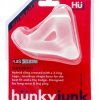Ergonomic cocksling with teardrop-shape 3 ring design.*It`s a sling but each ring stretches independently, each ring is also shaped to fit*Designed with the comfort of the wearer always in mind*Our plus+silicone TPR/silicone blend feels smooth and warm…velvety like silicone + strong and stretchy like TPRSLINGSHOT is the best fitting sling we have ever made: it`s a hybrid cocksling with a teardrop base…this sling fits because it is shaped to fit you. Each opening is the right size to form ergonomically to your shaft and balls–the teardrop-shaped base comfortably wraps around the top of your ballsack and tapers back to snugly fit between the legs with an upward curve so it rubs your taint. The ring at the front has a slight dip at the base–this reduces pressure on the sensitive underside of your cock. The side cutouts reduce bulk and weight so this sling will fit all sizes and feel like it`s connected in a way no other sling can. Part of what makes this feel so good is our plus+silicone TPR/silicone blend–it feels smooth and warm like silicone + strong and stretchy like pure TPR.Hünkyjunk SLINGSHOT for Hüj bulges!