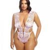 Explore exciting new depths as you plunge into romance our newest Sloane collection. Combining a luxe feel of lace with a core-hugging sheer mesh bottom, this teddy features lace up ribbon detailing and cheeky back. Sloane keeps sexy simple and makes you feel effortlessly sexy. Large/XL: Bust 36in. – 40in., Waist 29in. – 33in., Hips 38in. – 42in.