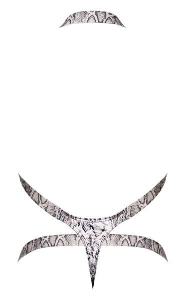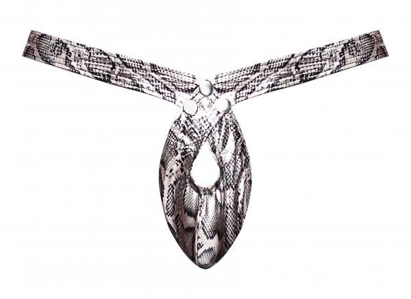 S’naked Criss Cross Thong Silver, Black L/XL from Male Power Lingerie. From the S’naked collection by Male Power, the Shoulder Sling Harness Thong features a behind the neck strap and Sling, attached to a Pouch Thong. Poly/Spandex metallic coated all way stretch printed fabric.