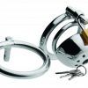 Lock up his dick in solitary confinement! His cock will not be getting any attention while it is trapped in this intensely constricting chastity device. Yank his cock and balls through one of the two base rings, sized differently to fit your submissive the way you like it. Lock the shaft portion of the cage in place, squeezing his flaccid cock for the ultimate incarceration. Now he is completely at your mercy, unable to find release unless you allow him to. This sturdy stainless steel cage can be worn for as long as you desire, with a faucet feature that allows him to urinate. His cock belongs to you and you hold the key!