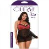Sophia Halter Babydoll and Panty 3X/4X from Fantasy Lingerie Curve line. A mesmerizing silhouette, the Sophia babydoll and panty set is a must have. Fashioned with both romance and style, this babydoll set features a halter tie bra top and sheer skirt that drapes over the body.