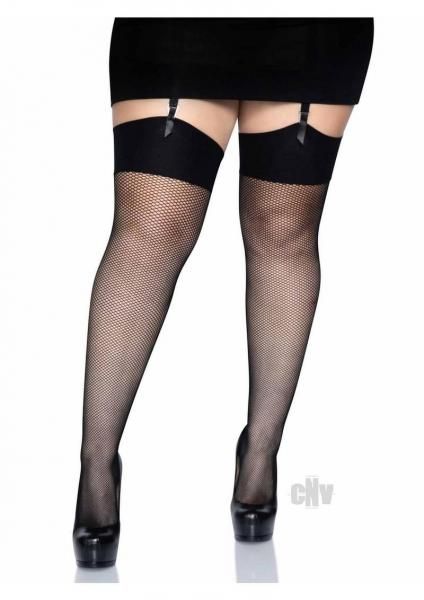 Spandex Fishnet Stockings With Comfort Wide Band Top Black 1X-2X
