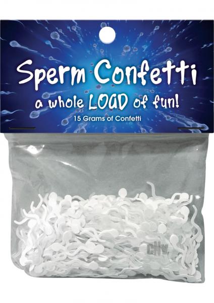 A whole load of fun! Fling it at someone you love, unload on your friends, frost an adult cake, spooge on someones desk, shock your in laws, use in a two weeks notice, give your roommate a wet dream, or buy several and go nuts! Includes: 15 grams e or approximately .53oz of sperm shaped confetti.