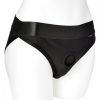 High cut style. Interior fabric panels secure toys and provide support. Built in nitrile o-ring 1.5 inches. Designed with 2 bullet pockets to provide extra stimulation. Please note bullet vibrators are not included. Wicking material keeps moisture under control. Includes a travel pouch to carry your harness anywhere with ease.