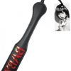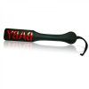 Black vinyl paddle with BABY design. 12 inches handle allows for more power behind the spanking. Wrist strap keeps paddle in place. Leaves a great impression on your partner. Black on red. From Sportsheets.