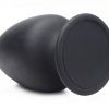 Measurements 4.3 inches in total length, 4 inches insertable length, 2.5 inches at widest diameter, 1.1 inches in diameter at narrowest diameter, unmanipulated. Material Silexpan silicone. Color Black.