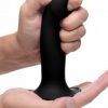 Measurements 6.75 inches in total length, 6 inches insertable length, 1.5 inches at widest diameter, 1.35 inches at narrowest diameter, unmanipulated. Material Silexpan silicone. Color Black.