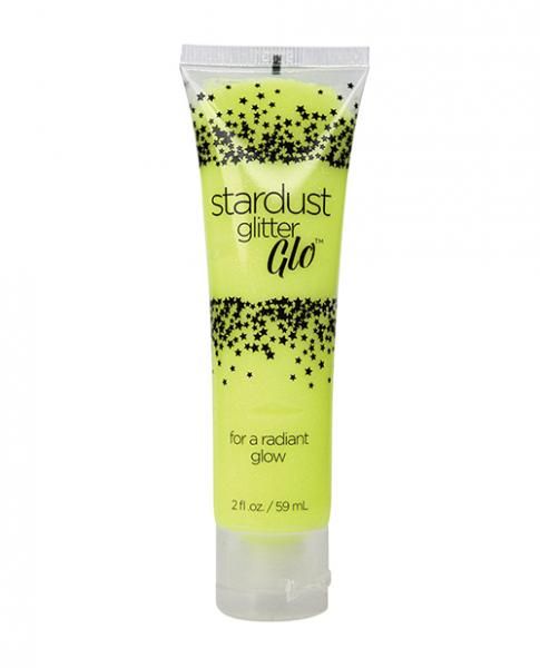 Stardust Glitter Glo Incandescent Yellow 2 fluid ounces from Kingman Industries. Made with soft polyester flakes add real sparkle to your life. This product is pleasantly scented. It is made for pure ingredients and does not contain alcohol. It softens while actually moisturizing the skin. Black light enhances the glow!
