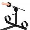 The ankle and wrist shackles are fixed, while the collar height is adjustable from 8 inches to 13 inches in height. The chest pad is adjustable from 7 inches to 12 inches in height and slides forward and back with an adjustability range of 17.5 inches. The rod screws into the steel stockade body, and two pivot points allow you to maneuver the rod up and down and from side to side at a 90 degree angle. The rod accepts most dildos with a flat, flared base, with a maximum girth diameter of 1.5 inches. Once you find the perfect position, you can lock the rod securely in place with two screws. The rod also slides back and forth with a 12.5 inches thrusting length. The stockade can be used with or without the fucking rod. The body itself is adjustable to accommodate many different body types and heights, from 33 inches to 42 inches in total length.