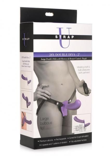 Strap U 28x Lg Dbl Dildo Harn/rc Purple