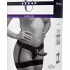 With this garter belt style strap on harness from Strap U, you get comfort and sex appeal, all in one system! The wide elastic straps will accommodate most sizes, and the attractive thong style back design offers snug maneuverability. you can insert your favorite flared base dildo into one of the included metal O-rings, snap it into place, and you are ready to start penetrating your partner. The back supporting strap offers a more form fitting design that hugs the contours of your body, allowing you to move freely. With the interchangeable rings and snap-in system, you can sway out one of the included rings for your own, for more size options! This harness system is easy to maintain, making this a comfortable yet sexy choice for all your strap on adventures.