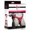 Peg your partner in style with this deluxe leather corset harness! Vibrantly colored, it is also beautiful, flattering to your figure, and comfortable to wear! Made out of leather, the outside is brushed so it is soft. It's durable, long-lasting and forms to your body the more you wear it. Adjust the straps around the thighs and hips using the nickel-free, metal buckles. Adjust the back with stylish, corset-style closure that has nylon laces. Along the inside is a soft lining that reduces chafing and makes wearing it more comfortable for long scenes. At the front is a metal o-ring. Spot clean as needed.