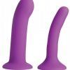 Both dildos are compatible with most harnesses. You can even suction down the bases to a hard, smooth surface for solo play or to put on a show! Curved for optimal G-spot or P-spot stimulation, you will love the sensations that these dildos produce. The soft material is smooth and seamless for a silky, sleek insertion with water-based lubricant. This silicone is non-porous and phthalate free, cleaning easily with mild soap and warm mater.