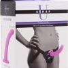 Made of silicone, it is non-porous and phthalate-free. Sterilize with mild soap and warm water, but do not use with silicone lubricants. Measurements: 7 inches in total length, 6.5 inches insertable. 1.75 inches at widest insertable diameter. Harness adjusts up to 44 inches around the waist and 28 inches around each thigh. Materials Silicone, nylon, ABS plastic, metal. Color Purple. Note includes harness and dildo.