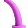 Perfect for pegging or vaginal sex, this strap on set has everything you need for a comfortable and passionate penetration! Equipped with a sexy, adjustable harness and a silky, non-threatening dildo, you and your partner will be able to delve into new pleasure territory. The harness accommodates many sizes, wrapping seductively around the butt and thighs. A small pocket sits within the inner panel for adding a vibrating bullet if you choose. The dildo is curved for prostate or G-spot stimulation, with a tapered shaft that gradually increases in diameter. This, coupled with the smooth material, will allow for an easy insertion at your own pace. The dong can also be used on its own, with a suction cup base that is perfect for mounting to hard surfaces.