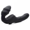 A slender shaft, subtle textures, and 9 incredible modes of vibration set this beautiful strapless strap on apart! This rechargeable pleasure tool features dual motors to provide you with 3 speeds and 6 patterns of powerful internal thrumming. The single control button is easy to use and accessible during penetration. Both ends of this artfully designed double dildo are shaped for the ultimate in ecstasy: the bulb is adorned with gentle waves while you grind your clit against bold grooves of the front pad.