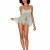 Stretch Lace Babydoll Set W/ Ruffle Trim Mint O/s