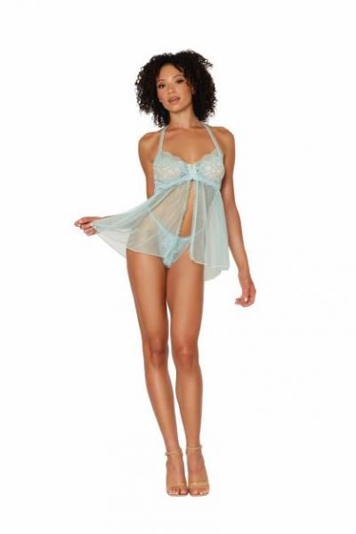 Stretch Lace Babydoll Set with Ruffle Trim Mint O/S from Dreamgirl International Lingerie. One size fits most 90 pounds to 160 pounds. Care hand wash in cold water. No bleach. Line dry. Comfy meets sexy. Make a statement in sexy loungewear and cozy sleepwear accented with delicate lace fabrics, embroidery, and more. Categories Babydoll Set: Lingerie, Clothing, Babydolls, Slips, Women’s Sleepwear, Naughty Role Play, Xmas items. Restricted, Amazon Restricted.