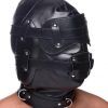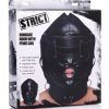 Create a customized sensory experience for your plaything! How much will you deprive them of? This hood has padded ears to take away your partners ability to hear, so that they will not be able to hear the swish of the flogger or the flick of the crop before you hit them. While there are three holes for their eyes and mouth, a blindfold allows you to take away their sight, so that your slave will be surprised by every touch and tickle.
