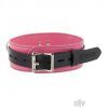 Enjoy the power and seduction of this this sexy leather collar! It makes the perfect finishing touch to your fetish outfit without compromising comfort or function. Soft, flexible leather covers the collar entirely for the utmost comfort, while three individual rings make it easy to attach leashes or other accessories. A lockable buckle ensures that your lover is securely restrained until you decide to release them. Measurements: Approx. 2 inches wide; tightest adjustment approx. 14 inches circumference; loosest adjustment approx. 22 inches. Material: Leather. Color: Pink. Note: Locks Sold Separately. Warning: This is a NEW item that is not in retail packaging, usually a plain box, wrapped in plastic or a poly bag.