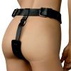 The Strict Leather Women’ s Leather Anal Plug and Dildo Harness. This harness is designed to accommodate a female’ s anatomy. The soft and durable genuine leather waist belt secures snugly with roller buckles. The crotch belt hugs the crotch as it fastens around the back. The belt is adjustable and fits waists 25 inches to 39 inches. The pouch accommodates both an anal plug and a vaginal dildo. The plug slots sizes are 1 and 1.5 inches in diameter and are easy to use. The soft, high quality leather construction makes this harness comfortable for long term wear. *Plug not included.