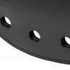 Rounded Latigo Leather Paddle with Holes. This paddle is 15.5" long and 5.75" wide, the handle is 6.5" long. This paddle is made up of two pieces of thick latigo leather sewn togther. A steel spring is in the middle of the paddle providing sturdiness and quite a sting. The paddle also has 8 holes that help provided more of a sting when laying the smackdown on your subs ass! Also includes a leather loop on the handle used for hanging.