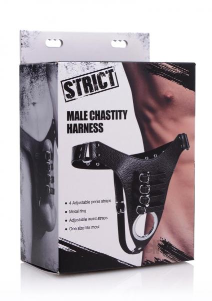 Strict Male Chastity Harness O/S Black Leather