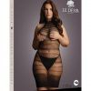 Fishnet garterbelt with striped and attached leg bands. This gaterbelt fits size 2XL-5XL. Thong not included.