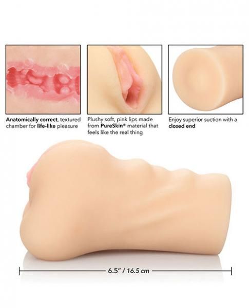 Over 1 pound of heavy duty stroking pleasure. Ultra life like and anatomically correct, textured chamber. Plushy soft pink lips. Closed end for superior suction. Maintenance free.