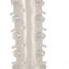 Soft, textured and stretchy penis extender adds girth plus 1 inch in length. Support ring secures fit.