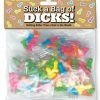 A bag full of 25 individually wrapped small packs of tart penis shaped candies. These are perfect for bachelorette party favors, piñatas or just a fun hand-out. With 5 candies in in every small bag, these packs make it easy to suck a bag of dicks!