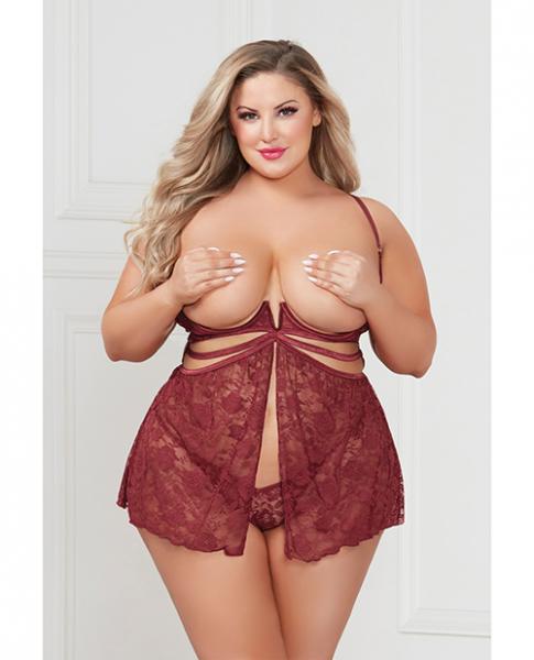 Super Sexy Stretch Lace Babydoll W/g-string Wine Qn