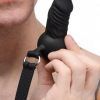 This erotically shaped gag features a penis mouth piece with semi realistic texture detailing. Made of premium silicone, the Suppressor is non-porous and hypo allergenic. The adjustable silicone straps are attached to the gag by two metal O-rings. Use the optional locking feature by adding your own padlock to secure your subject. The gag can be worn with the penis in to restrict their speech, or with it out to force them to pleasure you. Whether in or out, this devious piece will keep your plaything perfectly gagged and compliant.