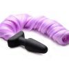 Tailz Purple Pony Tail Anal Plug from XR Brands. Enjoy hot equine action in a fun, flirty color with this smooth, full pony tail! Braid it, brush it, swish it, show it off! The tail is a full 20 inches of synthetic fiber, topped with a phthalate free and silky smooth silicone plug. The classic spade shape inserts easily, with a flared base to keep it firmly in place. Measurements 24.25 inches in total length, 3.5 insertable, 1.3 inches in diameter. Materials Silicone, synthetic fiber. Color Purple. Note heat styling not recommended.