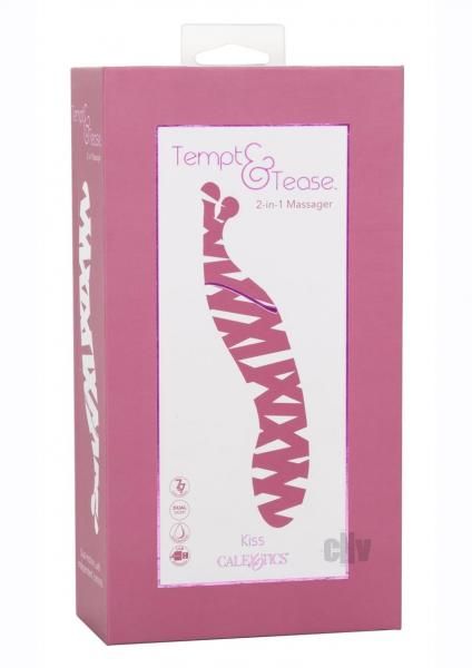 2-in-1 massager with mind-blowing power. G-spot tip with 7 speeds of vibration. Two flickering teasers with 7 speeds of vibration. Dual sided with independently operated motors. Body-safe Silicone. State-of-the-art memory chip resumes on last speed used. Easy push-button control hold for 3 seconds to turn on or off. USB rechargeable charging cord included. Complete charge in 2 hours. Runs for 60 minutes on high speed and 90 minutes on low speed.