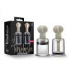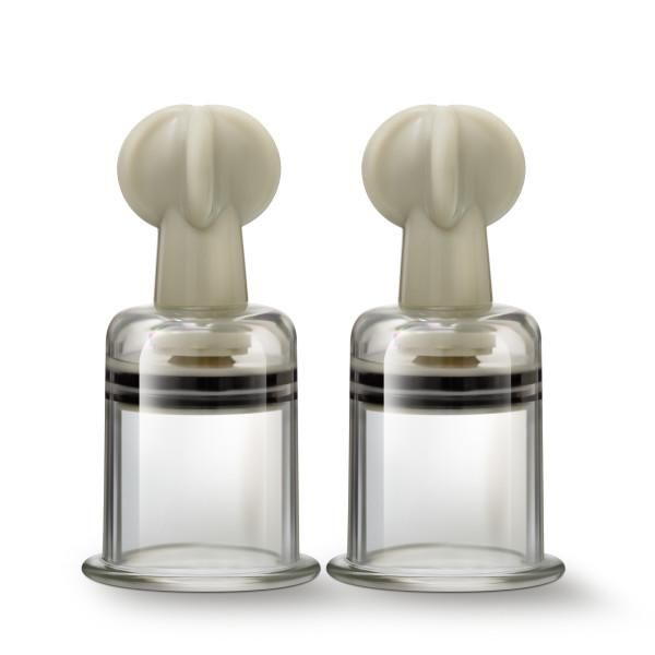 Temptasia Clitoris And Nipple Large Twist Suckers Set of 2 Clear. Suction set of 2 large cylinders to stimulate nipples and clitoris. Sensation. Each crystal clear cylinder delivers engorgement and heightens sensation. Explore. Fully adjustable cylinders allow you to play with different levels of pressure. Peace of mind. Made of body safe acrylic. Contains no fragrances, phthalates or latex. Size 1.5 inches inner diameter for each cylinder.