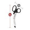 Temptasia Safety Scissors Black from Blush Novelties. Safety first. Essential. The perfect tool to safely cut your partner free from bondage rope or tape. Easy to use. Light weight, easy to use and easy to clean. Safe. Angled handle and protected tips to avoid injury. Peace of mind. Made of Stainless Steel. Size 6.5 inches length by 2.5 inches in width.