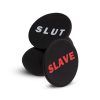 Temptasia Slave Plug Black from Blush Novelties. Erotic base includes an expressive message. Easy use. Tapered for easy insertion. Round base securely anchors plug outside the body. Smooth Satin smooth finish. Comfortable size. Peace of mind. Made of Satin Smooth, body safe Silicone. Contains no fragrances, phthalates, or latex. Size 2.5 inches in length, 2 inches insertion length by 1.4 inches in width. Show them what you really are: The Temptasia Slave Plug is an expressive anal toy made from satin smooth silicone. Featuring a tapered tip for easy insertion, this Temptasia plug is ideal for new to intermediate level anal players. The round base sports the word SLAVE, painted in the platinum cured silicone. It is body safe and simple to clean! Please note shown with SLUT butt plug, not included. Sold separately.