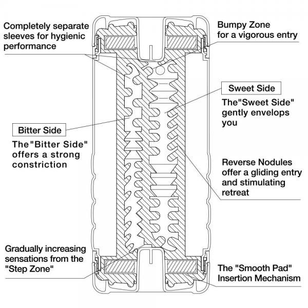 Tenga Double Hole Cup Ultra Size 3.07 inches in depth by 3.07 inches in width by 7.13 inches in height. Insertion length 6.77 inches, insertion width 2.92 inches. Weight .64 pound. Other specifications: disposable, prelubricated. Materials insert sleeve Thermoplastic Elastomer TPE. Casing polyethylene PE. Lubricant Ring polyurethane PU. Ring Lubricant inredients Water, Glycerin, Propylene Glycol, Hydroxyethylcellulose, Sodium Polyacrylate, Phenoxyethanol, Methylparaben, Hydroxypropyl Beta Cyclodextrin, IPBC. Internal Lubricant: Water, Glycerin, Sodium Polyacrylate, Phenoxyethanol, Methylparaben, Hydroxypropyl Beta Cyclodextrin, IPBC. Lubricants certified by EU Directive 76/768/EEC toxicological assessment.