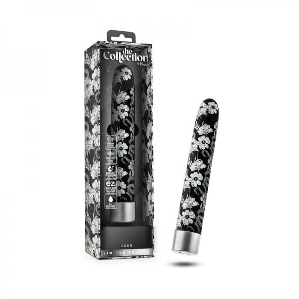 Introducing The Collection Eden, the ultimate slimline vibrator designed to elevate your pleasure. With RumbleTech technology, experience deep, rumbly vibrations and indulge in 10 vibration functions. With 5 speeds and 5 patterns to choose from, you can customize your pleasure to perfection. Eden is designed with a raised plus button for better control. Easily navigate through the various vibration functions in the dark, either on your own or with a partner. Say goodbye to batteries with Magna Charge™ USB Rechargeable technology. Take your pleasure to new depths with the IPX7 Waterproof feature of Eden. The Eden is not just a sex toy, it’s an invitation to your own personal paradise. Embrace your desires and discover the Eden you’ve been longing for!
