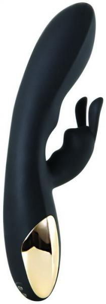 10 vibration functions including patterns, pulsation, escalation. 4 constant speed settings take you over the edge Curvy G-Spot shaft and flicking bunny ears target your hot spots. Handle with eye catching gold plated accents. Waterproof vibrations and submersible. Material Silicone. Color Black. Rechargeable, runs for 50 to 90 minutes on a single charge. Includes magnetic USB charging cable. Total length 8 inches, insertion length 5.5 inches, width 1.5 inches. 5 year warranty.