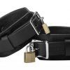 Measurements waist belt adjusts from 32.5 inches to 40.5 inches around, rear belt adjusts from 10 inches to 14.5 inches long, accommodates anal plugs up to 1.46 inches in diameter.  Materials Leather, Metal. Color Black. Note Anal Plug and Pad Lock not included. Warning this is a NEW item that is not in retail packaging, usually a plain box, wrapped in plastic or a poly bag.