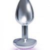 Sleek chrome metallic body and Glitzy heart shaped bejeweled base on the anal plug perfect for beginners, designed and sized for easy insertion. Non-porous, easy to clean. From Icon Brands Violet heart jewel. Body safe stainless steel. Actual height 2.8 inches. Includes black storage bag.